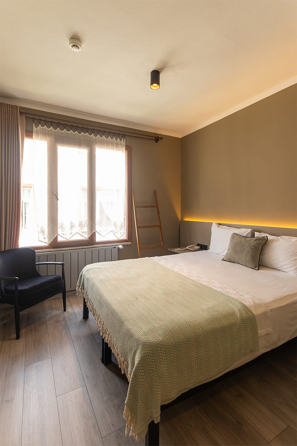 Minimalist tasarımla yenilenen Yan Cephe Standart Odalarımızda sizler için konfor ve huzuru bir araya getiriyoruz. Tüm ihtiyaçlarınızın düşünüldüğü odalarımızda kendinizi evinizde hissedeceğiniz bir ortam sunuyoruz. Yan Cephe Standart Odalarımızı bahçe katı ve üst kat olarak tercih edebilirsiniz.